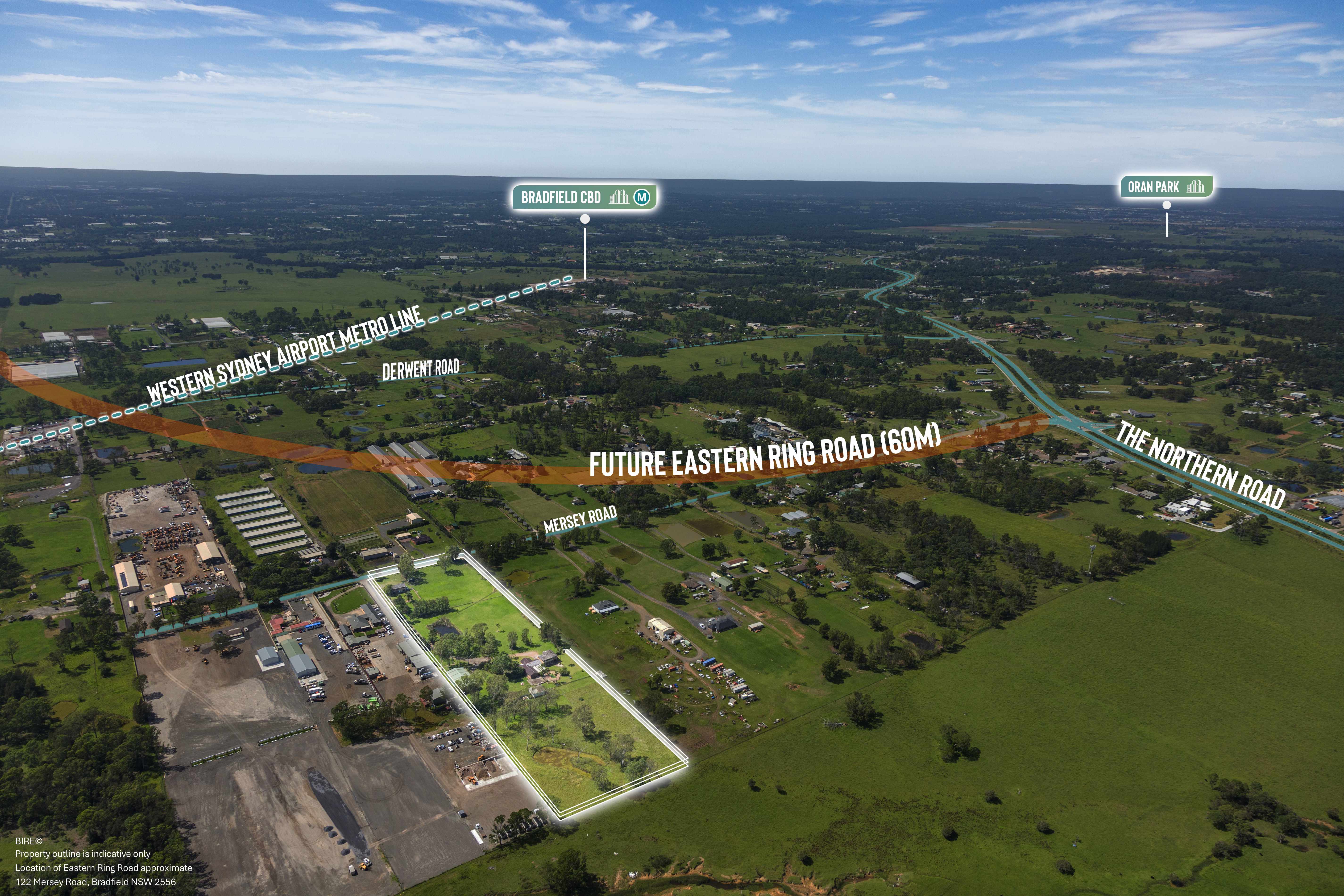Bradfield International Real Estate (BIRE®) is pleased to present 122 Mersey Road, Bradfield — a 4-hectare* Enterprise-zoned landholding positioned directly adjacent to Western Sydney International Airport within the Aerotropolis Core precinct.
